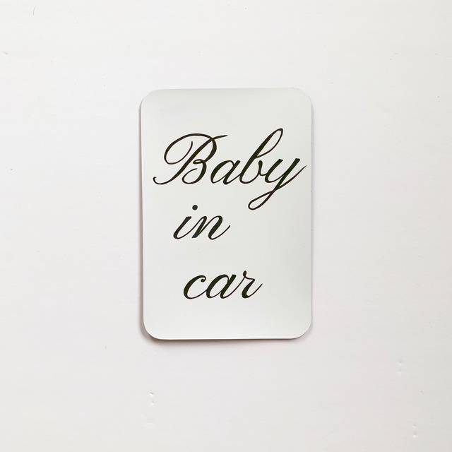 "baby in car" とサインペイントしたマグネットシートです。 お子さまの乗る車に貼ってご使用していただけます。 size 150mm x 100mm x1mm 手書きの為 塗りムラ 下書きの跡 等があります。 神経質な方はご注意下さい。 マグネットシート使用時のご注意! 長時間貼ったままにしますと外気温や天候の影響を受け本品が相手面に貼りつき傷める場合がありますので時々(洗車時等)外して清掃してください。
