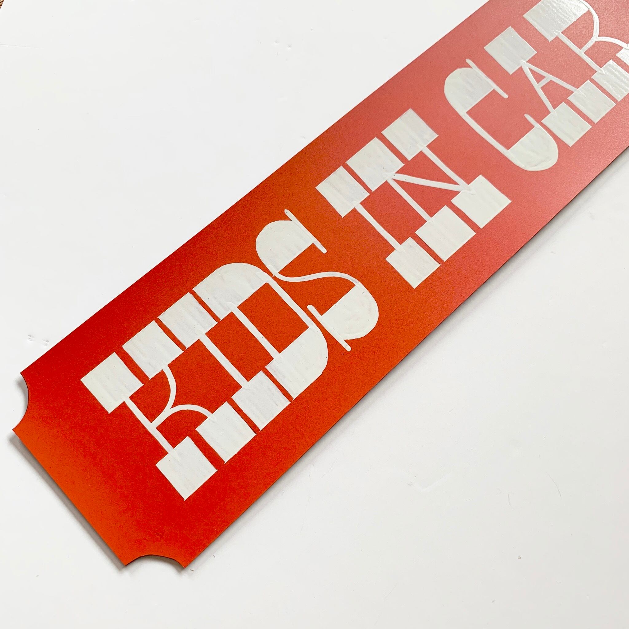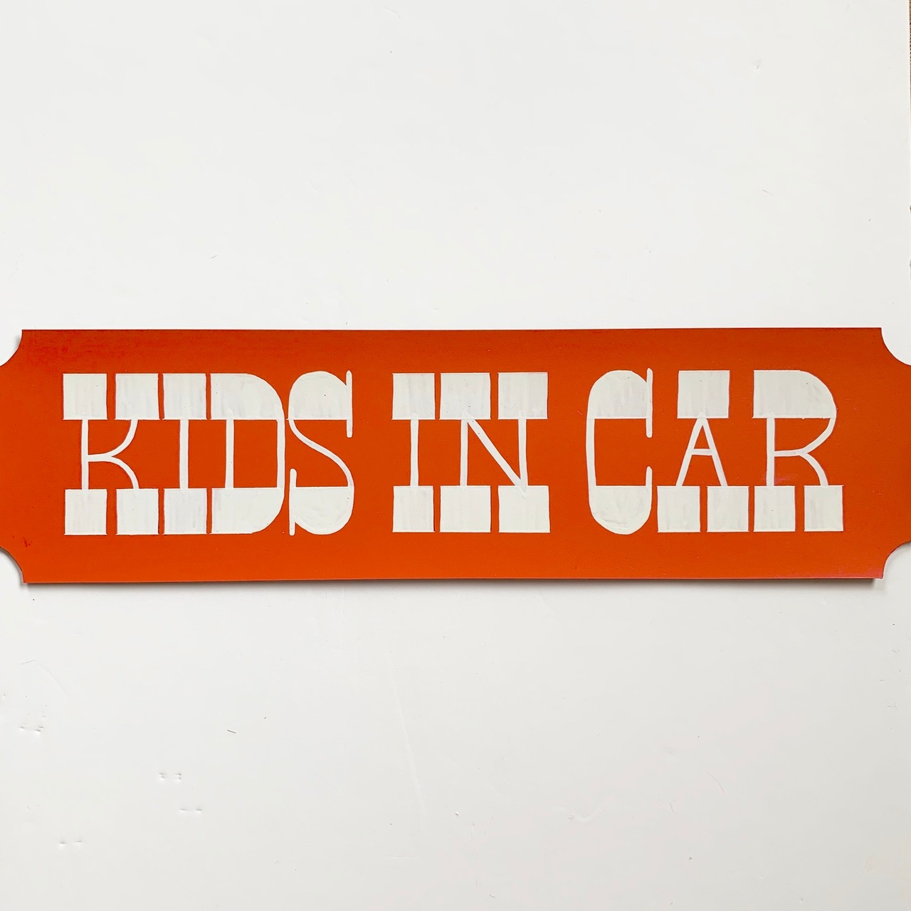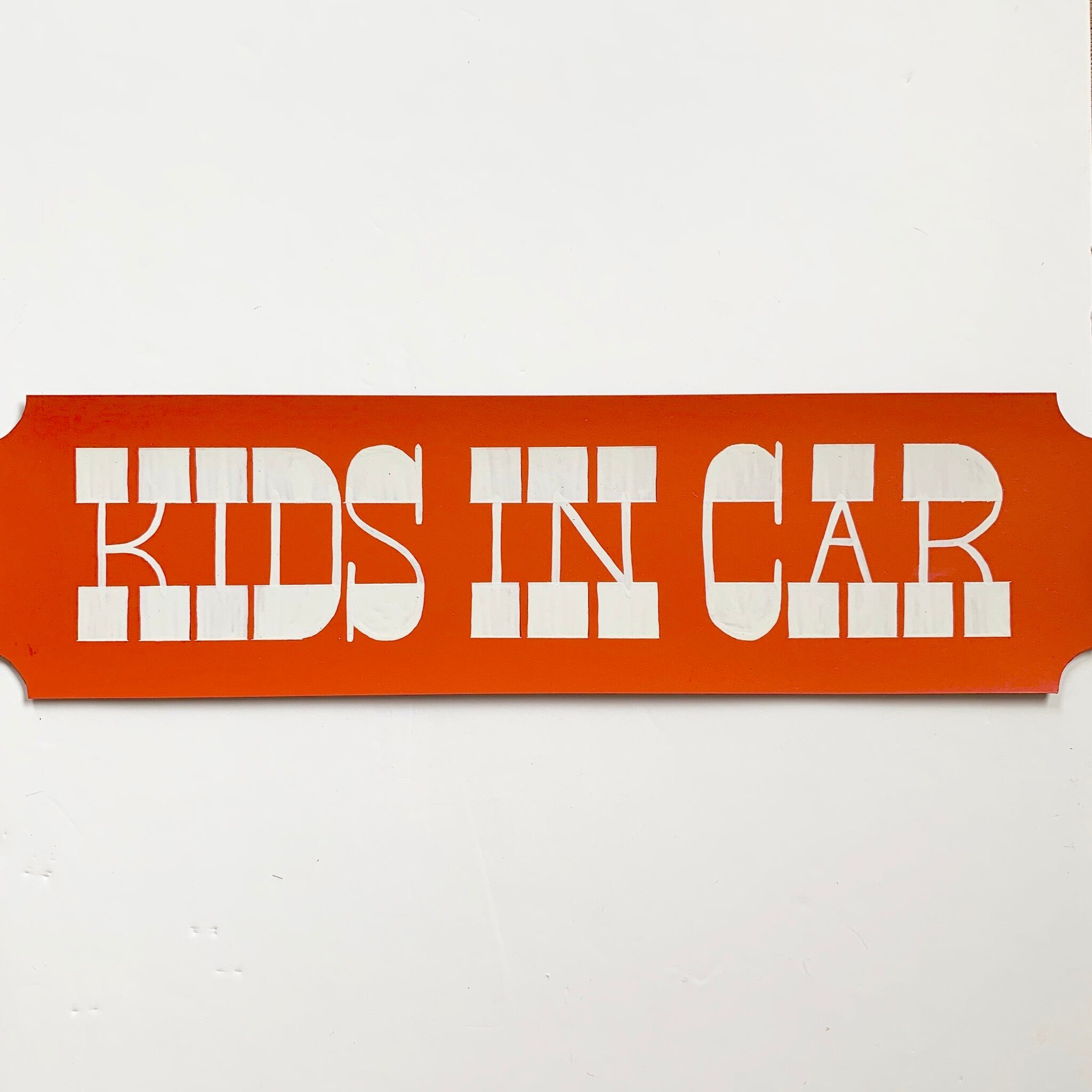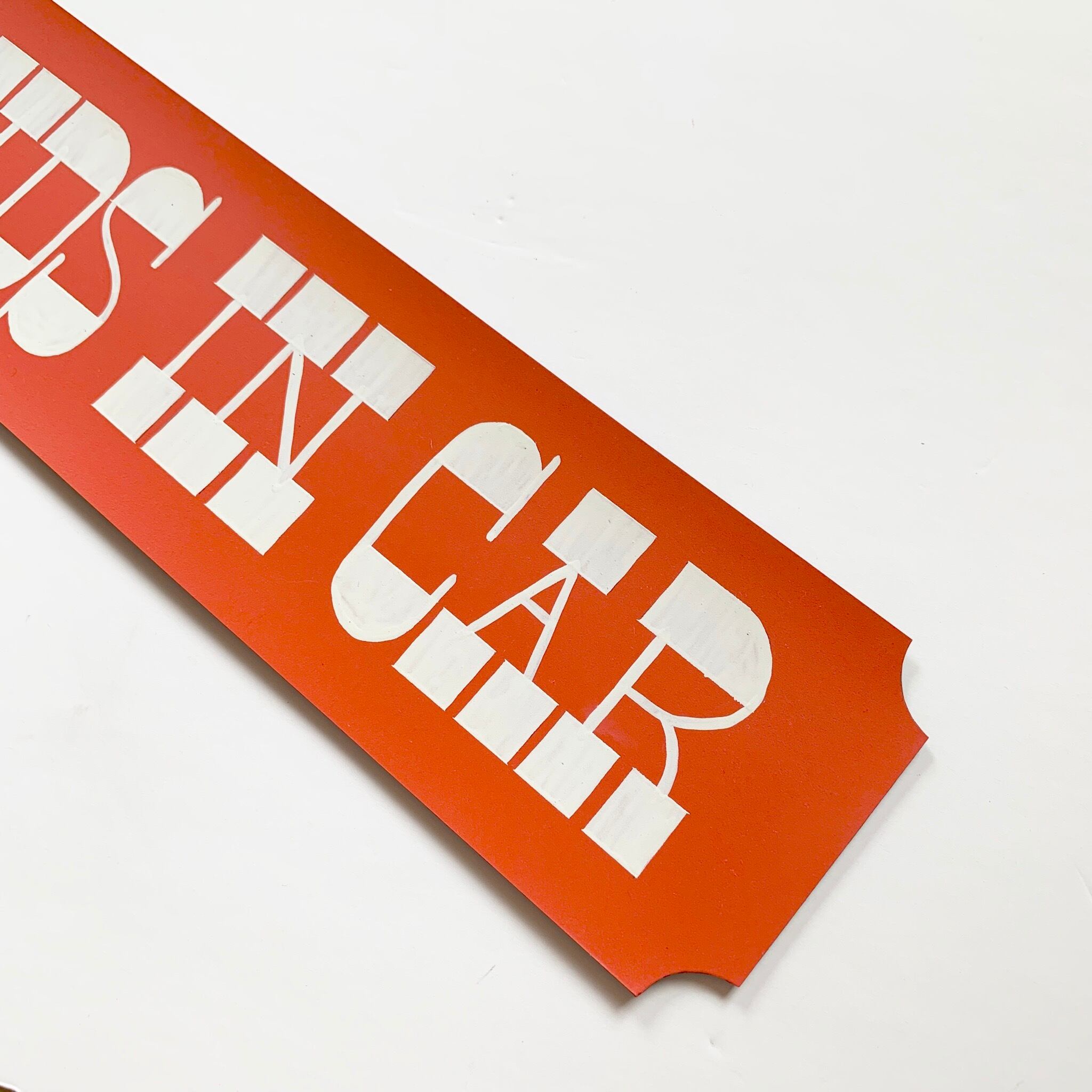 "Kids in car" とサインペイントしたマグネットシートです。